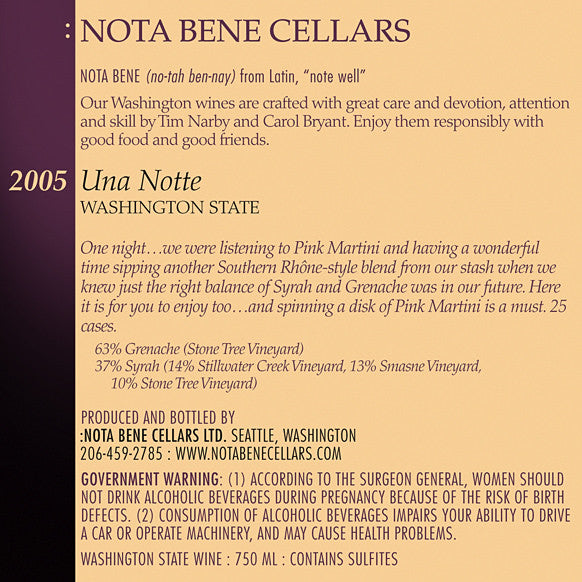 2005 Una Notte : Columbia Valley